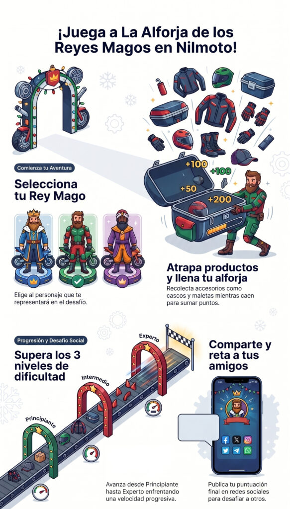 En el mundo del ecommerce, captar la atención del usuario es un reto constante. Por eso, desde Ertia planteamos una estrategia diferente para Nilmoto: transformar la experiencia de descubrir accesorios de moto en un desafío divertido y competitivo. ¿El resultado? «La Alforja de los Reyes Magos».
